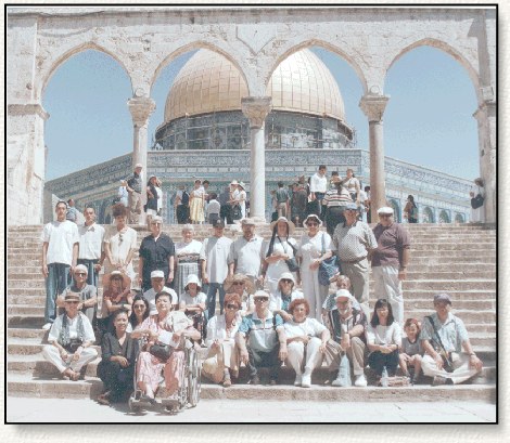 The tour group that toured old Jerusalem on 26 July 1997. The Dome of the Rock in the background. This is the area where people believe the second Jewish Temple was built.